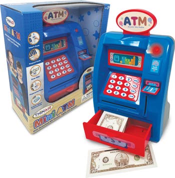 PLAYFUL MINDS: MINI PRESCHOOL ATM - Experience the Joy of Playing with Money with the Thin Air Brands Preschool Pretend ATM Savings Piggy Bank. This isn t just a toy—it s a fun, engaging way for your child to learn about money while they role-play just like mommy or daddy. The easy-to-use pretend ATM machine boasts lights and sound, bringing a modern twist to the classic piggy bank. It s not only an attractive addition to your child s room but also encourages interactive play. This piggy bank has a built-in electronic bill feeder for pretend money or real dollar bills. The toy ATM machine comes to life with its unique on/off debit card insert feature. It rewards your child with light and sounds when depositing and withdrawing money, making the experience feel real while keeping it kid-friendly. The preschool ATM is not a real working ATM – it is a toy. It does not count real money, does not have a fragile LCD screen, and is designed to be a fun and durable piggy bank for kids to store their allowance or hard-earned cash. Features: Light and sound, Pretend fingerprint scanner, Electronic bill feeder, Coin slot, Play money. Designed in the USA. Recommended for preschoolers ages 3 and up. Packaged in a colorful box, making it a great gift for birthdays, holidays, and special occasions. Includes bank, pretend debit card, and play bills and coins. Requires 3 AA batteries (not included).