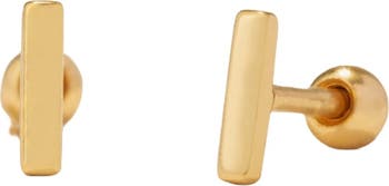 Featuring a flawlessly polished finish, these mini bar earrings add a tiny pop of shine that shows off your signature style. Each lightweight stud features a shorter post length and a screw-on ball-style back for comfortable, long-term wear. Exchange the snags and pokes of traditional earring backs for a style that is cartilage and lobe friendly, headphone ready, and nap approved. \nDelivered from the Made by Mary studio in a giftable book-style box, each piece is carefully crafted with your story in mind.