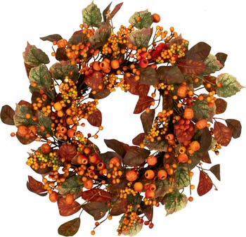 - Fall harvest green and orange artificial wreath