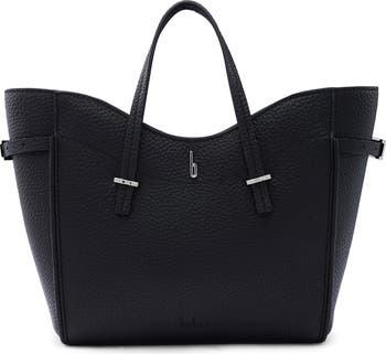 Adjust the width to best accommodate your essentials with this versatile mini tote styled with an elegantly curved silhouette from richly pebbled leather.
