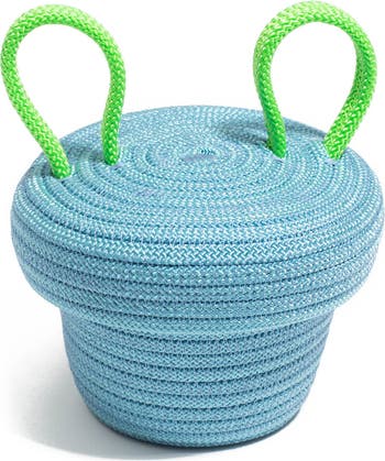 Bring a colorful touch of organization to your maximalist decor with this scaled-down braided storage basket featuring a lid sprouting with boldly oversized loop handles.