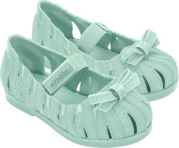 A dainty bow further sweetens the considerable charm of this ballerina flat featuring a grosgrain-textured upper made of tutti frutti-scented PVC.
