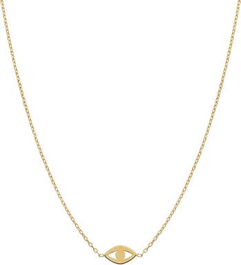 Bring all the stylish luck out when you wear Adina Eden s Mini Solid Evil Eye Necklace, featuring a petite 14K gold Evil Eye pendant that hangs gracefully from a delicate chain. Make this gem the perfect finishing touch to your everyday 14K chain and pendant layered look. Brilliant for any occasion.