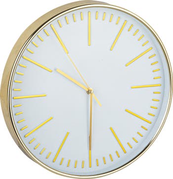 - A statement of understated luxury, this clock features a pristine white face with minute lines and gold accents