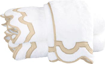 Inspired by the charming awnings found in Palm Beach, this plush cotton bath towel is from the brand s Mirasol collection and features scalloped sateen edging.
