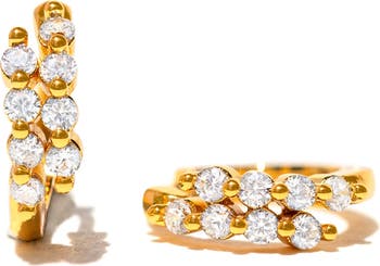Double up on sparkle with this pair of huggie hoop earrings fronted with cubic zirconia stones.