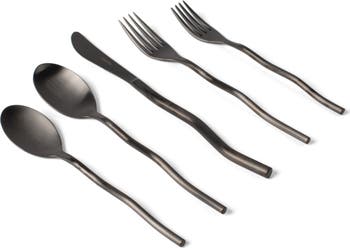 Add a playful modern vibe to your table with this Portugal-made flatware set with ergonomic handles in a unique undulating design.