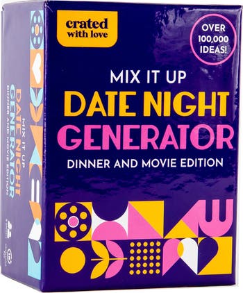 MIX IT UP DATE NIGHT GENERATOR - No more wondering what to do for date night! The Mix It Up Date Night Generator includes 140+ challenges card for you and your partner to create a memorable dinner and a movie challenge. Simply draw one Dinner Challenge Card, one Movie Challenge Card, and one Mix It Up Challenge Card, then combine. BOOM! Instant date night challenge! Over 100,000 unique date night ideas at your fingertips! Regular dinner and a movie date nights are outdated. Mix things up and never run out of date night ideas with our Mix It Up Date Night Generator: Dinner and a Movie edition! The game encourages spending quality time together. It is suitable as a romantic gift, a newlywed gift, and a conversation starter for couples.