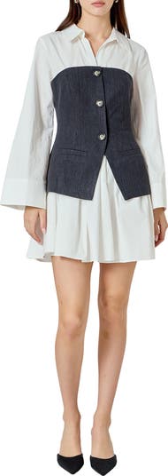 Achieve a two-piece look with one-and-done ease when you choose a look that reads like a crisp shirtdress paired with a strapless vest.