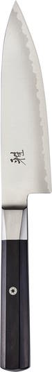 Additional features: The hand-honed Honbazuke blade boasts scalpel-like sharpness and an authentic, thin Japanese-blade profile with a 9.5–12º edge angle. The mirror-polished blade features Japanese design details including a sandblasted katana edge and embossed MIYABI logo. Stylishly stamped with a mosaic pin, an ergonomic pakkawood handle design nestles comfortably in the hand, while the rounded spine and heel ensure tireless cutting.