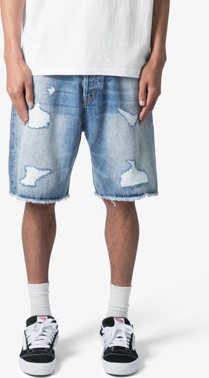 Massive rips, heavy fading and threadbare hems bring lots of history to wide-leg denim shorts that hit below the knees and look like you ve worn them forever.