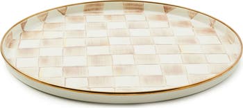 Mocha Check Enameled Steel Round Tray