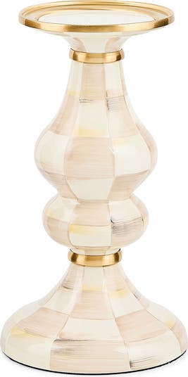 Bring a maximalist-approved addition to your living space with this pillar-style steel candleholder hand-painted with the brand s signature Mocha Check motif.