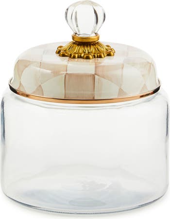 A hand-painted lid with a glass knob elegantly seals this small-sized canister that will keep your goodies and ingredients nice and fresh.
