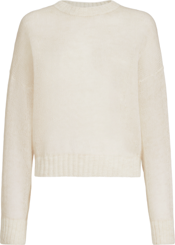 The mohair and wool yarn offers a lightweight, cozy texture with a slightly airy look. Adding a synthetic fiber helps to maintain the fabric’s structure and guarantee comfort.