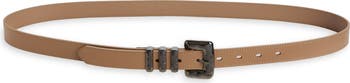 A molten metal buckle brings an organic-inspired touch to this modern belt made from smooth leather.