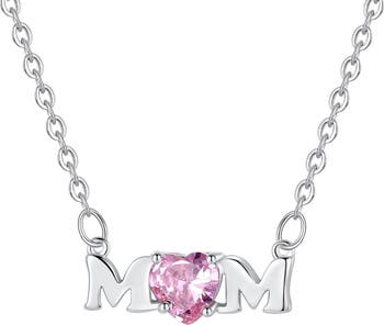 Hollywood Sensation s s Mom Necklace Pendant 18k Gold with Pink Heart Stone Cubic Zirconia with Necklace will surely make moms day or Mothers Day Necklace.