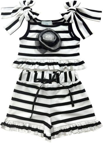 Add a touch of playfulness to your little girl s wardrobe with our Monaco Black and White Striped Top and Shorts Set. Made with comfortable fabric and featuring a stylish striped design, this set is perfect for any occasion.