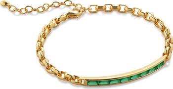 Glowing green onyx stones bring rich color to the center bar of this striking chain bracelet that is plated in recycled 18-karat gold.