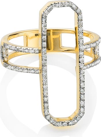 This glamorous openwork ring crafted from recycled sterling silver features diamond-lined geometry and warm 18-karat-gold plating.