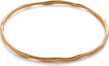 This hammered, high-polish bracelet makes a statement on its own and also makes a complementary stacking piece.