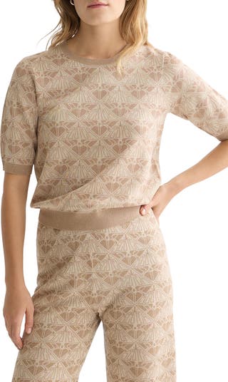 An embodiment of refined taste, this relaxed-fit sweater is framed by short sleeves and features a jacquard-knit repeating graphic.