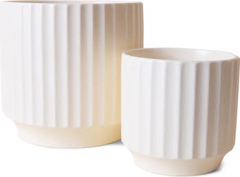 Introducing the Monroe Pot in the shade Rainforest: a modern piece of plant paradise in the perfect dark green hue ready to spruce up any space! It s fluted design features modern straight sides, and comes with a drainage hole and plug for your convenience. Plus, it s finished with a luxurious satin glaze and available in three sizes for any plant.