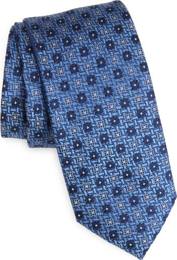 Mixed medallions bring smart, neat detailing to a tie crafted from textured silk to add polish and distinction to any formal or semiformal look. The rich coloring feels right at home at warm-weather occasions and adds a bold finish to an outfit when the weather cools.