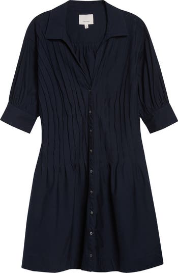 Puff sleeves and dimensional pleats radiating throughout the bodice amplify the carefree sophistication of this light and airy minidress.