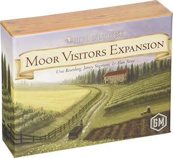 The Viticulture Moor Visitors Expansion, designed by famed designer Uwe Rosenberg (Agricola, Caverna, Patchwork) and Viticulture designers Jamey Stegmaier and Alan Stone, adds 40 new visitors to any version of Viticulture. Also included are corrected reprints of the Promoter and Harvest Machine cards. With business booming in Tuscany, tourism is at an all-time high! The Moor Visitors Expansion is an assortment of new summer and winter visitor cards to be shuffled into the visitor decks of any version of Viticulture.