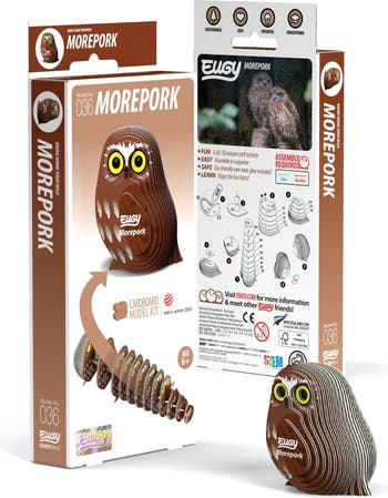EUGY Puzzles are environmentally friendly cardboard 3D puzzles that take 10-20 minutes to assemble.