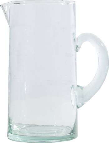 The Moroccan Glass Cone Jugs, handblown by artisans in Morocco using recycled glass, come in a set of six. Perfect for serving water, juices, or cocktails, these jugs pair beautifully with the Moroccan Cone Glasses, adding a touch of elegance to any table setting. Each jug showcases unique, handcrafted details, making them both a functional and stylish addition to your drinkware collection.