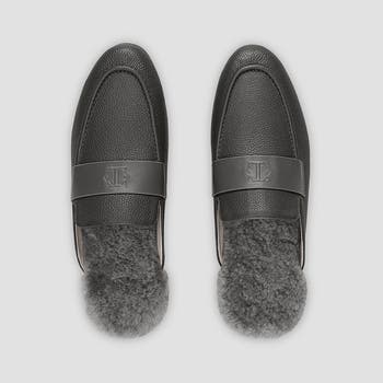 Stylish and warm men s slippers Morten are made of soft genuine leather and insulated with sheepskin.