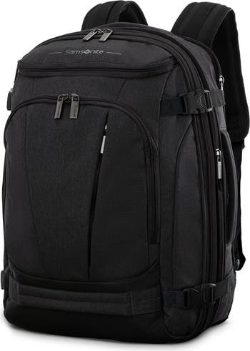 This backpack has tons of pockets strategically placed inside and out so everything has its place. Not only is it easy to organize, but its expandable with external compression straps so you can still fit your favorite backpack in the overhead bin.