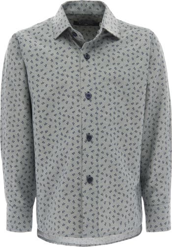 The printed dress shirt is a classic staple, featuring a lightweight cotton fit, long sleeves with button closure, double button pocket on the upper right hand side with clear buttons. The simple and elegant design makes it a versatile piece that can be styled in many ways.