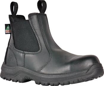 The Moxie Angelina Women’s Composite Toe Chelsea Work Boot combines modern style with serious jobsite protection in a sleek, easy-on design. Built with a lightweight composite safety toe, it delivers certified impact protection while remaining non-metallic. The black full-grain leather upper provides durability with a refined, feminine look, making it suitable for both industrial and professional environments. A soft cushion insole enhances comfort for long shifts, while the puncture-resistant midsole adds underfoot protection against sharp hazards. The direct-attach PU/PU slip-resistant outsole offers stable traction across varied surfaces. Certified to ASTM F2413-18 F/I/C EH PR, ASTM F3445-21 slip-resistant standards, and CSA Approved Grade 1, the Angelina Black Chelsea Work Boot delivers dependable safety, comfort, and style. Available in women’s sizes 6–10 and 11 B(M).