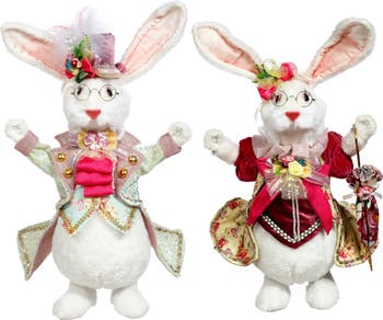Mark Roberts’ Mr. and Mrs. Fluffy Chubby Rabbit figurines capture whimsical charm with their round, plush-inspired bodies and sweet expressions. Mrs. Rabbit stands gracefully while holding a delicate umbrella, adding a touch of elegance and storybook romance to the scene. Together, they evoke a playful yet refined springtime aesthetic perfect for seasonal décor or collectible displays.