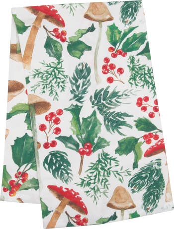 Spruce up your kitchen with the Mushroom Meadow Printed Kitchen Towel with artwork from Beth Grove. Featuring a sprightly and leafy woodland mushroom theme and fruity seasonal holiday color palette, this vibrant towel is sure to put a smile on your face. Brighten up your kitchen with a little nature-inspired cheer!