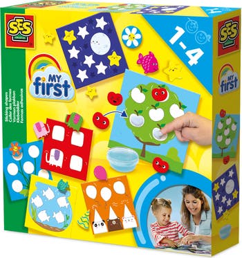 - STICK CREATE with SES Creative My First - Sticking Shapes! Encourages hands-on fun as kids glue shapes to complete colorful designs with ease and pride.