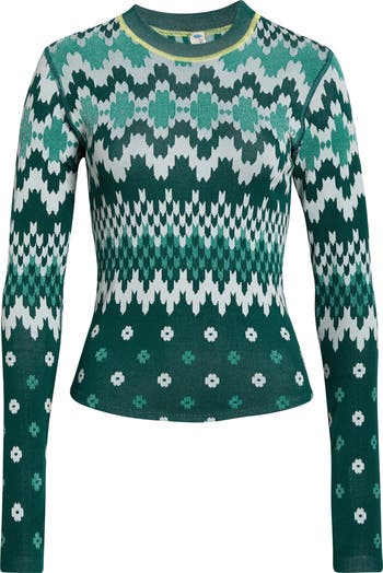 Love to layer in this sporty crewneck T-shirt covered in an eye-catching jacquard.