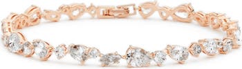Shimmering cubic zirconias in an intriguing assortment of sizes and cuts make up this glamorous and versatile line bracelet.