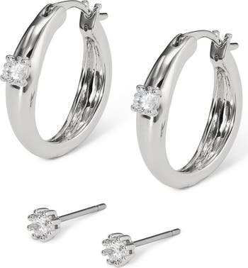 A single cubic zirconia sparkles on both these gleaming hoops and studs hand-polished to perfection.