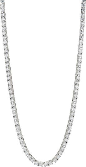 This hand-polished tennis necklace is lined with sparkling cubic zirconia and makes a perfect edition to your evening look.