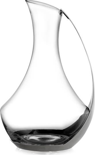 A sculptural design in sleek glass and polished stainless steel, this pitcher is functional art that s at home both pouring wine or simply making a statement.