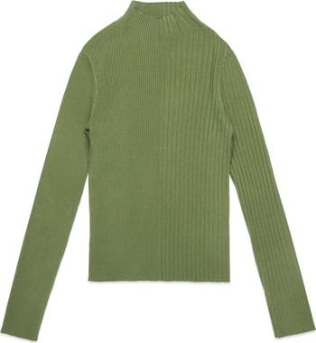 Mixed-width ribbing adds a subtle textural twist to a funnel-neck sweater that adds extra poise to any look.