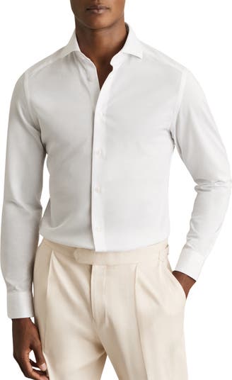 Smart and versatile, this solid-color shirt made with breathable cotton features minimal detailing to help it elevate any favorite look.