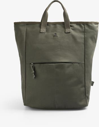 Backpack style bag|Made of recycled canvas fabric|Zip fastening. Inner pocket. Adjustable top and back short handles. Front logo and skull print detail.