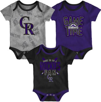 Newborn Infant Colorado Rockies Black/Heathered Gray/Purple Game Time Three-Piece Bodysuit Set