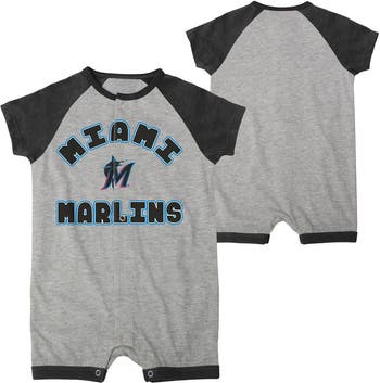 Newborn Infant Heather Gray Miami Marlins Extra Base Hit Raglan Full-Snap Romper