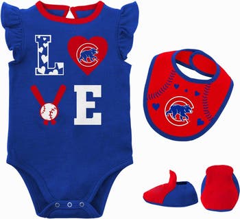 Newborn Infant Royal/Red Chicago Cubs Three-Piece Love of Baseball Bib Bodysuit Booties Set